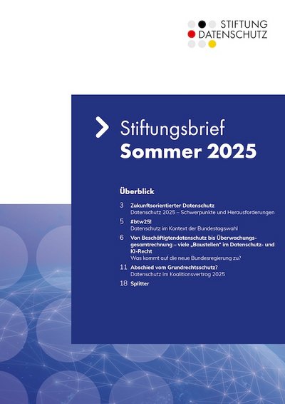 Hier finden Sie auch die früheren Ausgaben des Stiftungsbriefs der Stiftung Datenschutz zum Download.